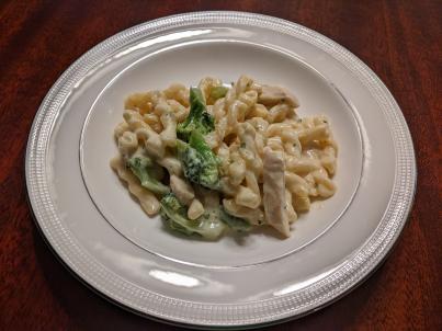Pan fry the chicken breasts in a small amount of neutral oil or butter, slicing lengthwise once firm enough to decrease thickness and increase surface area. Cool and chop into small pieces, about 2 cups.