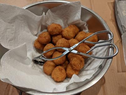 Arrange balls in a single layer in the basket of a deep fryer, then fry each batch at 375°F for about 2 minutes until golden brown and crispy. Alternately, freeze balls and fry later, increasing time to about 3 minutes.