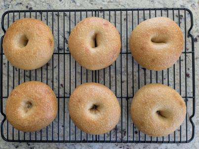Lightly grease 2 sheet pans. Form each ball into a ring shape by gently punching a hole in the center and stretching into a ring, and arrange with plenty of clearance to expand. Cover and let rise at room temperature for about 30 minutes, or chilled for 12-24 hours. The long, cold rise tastes better.