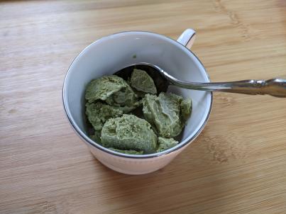 Carefully wash kale, remove leaves from the stems, and break leaves into pieces no larger than about 3 cm.