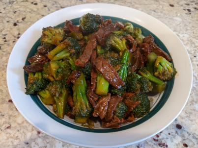Slice beef into small medallions, then add with broccoli to pan and turn to coat, cooking to finish beef to medium and heat thoroughly.