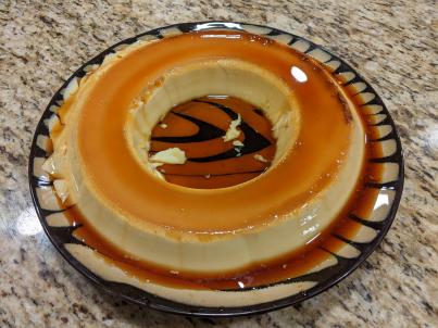 Bake in water bath for 45-50 minutes. Flan is done when poking it produces only slight jiggles.