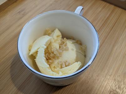 Warm butter just to the point of melting, but no further, and set aside to add to the mixture later.