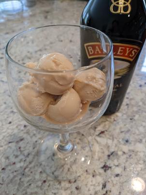 In two batches, freeze in ice cream machine, then freeze overnight. Makes about 12 servings.