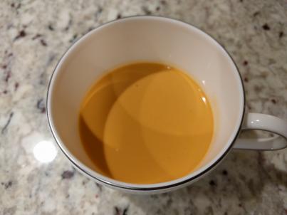 Once the tea has steeped enough to color the milk a medium tan color, remove the teabags and combine both milk mixtures.