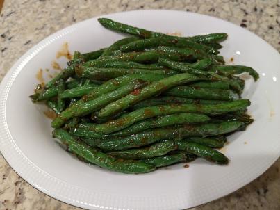 If using a deep fryer, fry green beans for 1-2 minutes until just blistered but not completely softened. Otherwise, sauté with a small amount of neutral oil until similarly cooked, though it will take longer and likely will not achieve the same external appearance.
